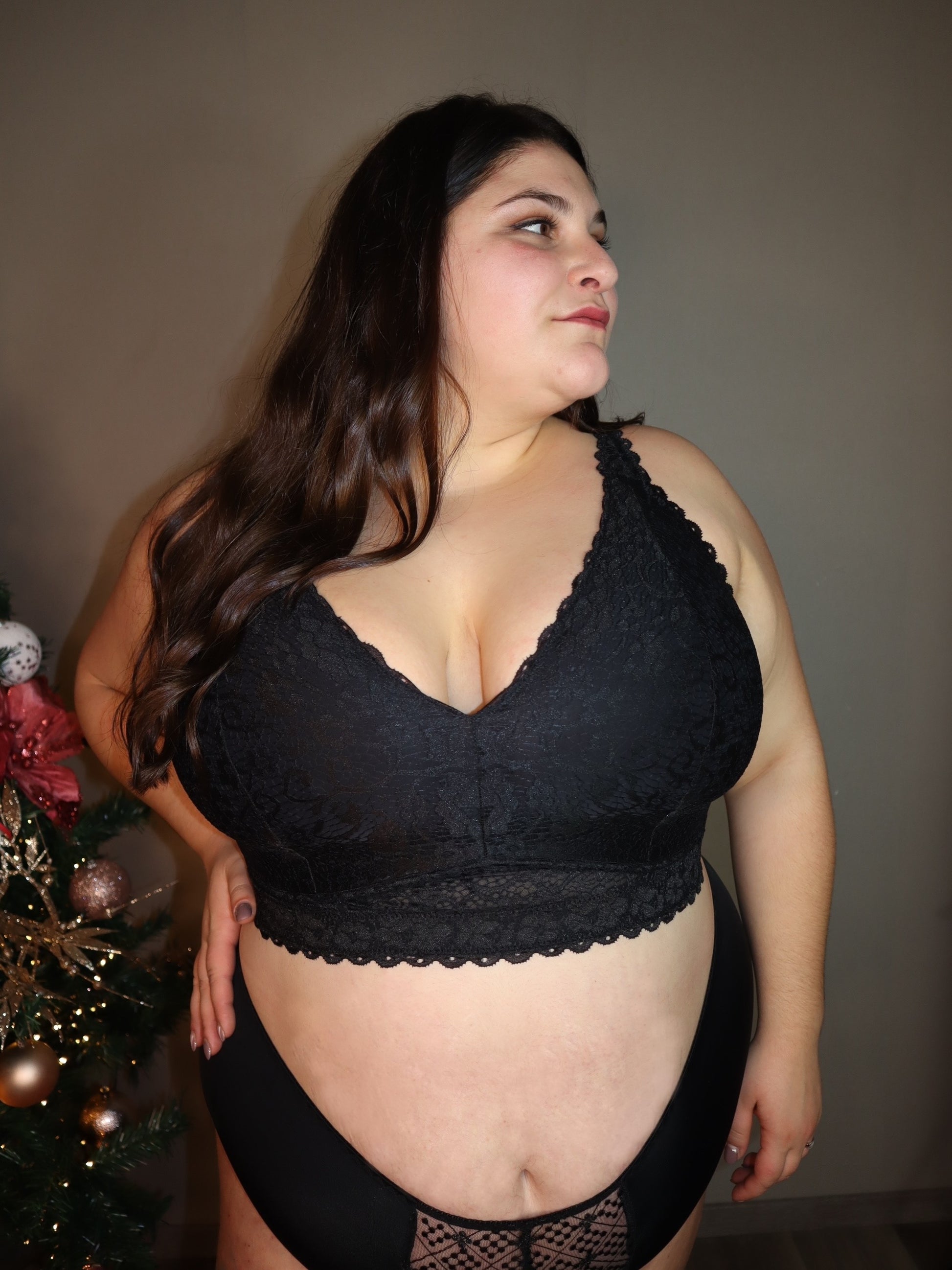 Reggiseno bralette taglie forti con coppe morbide a triangolo , le coppe internamente sono in tessuto morbido e rivestite all'esterno da pizzo.