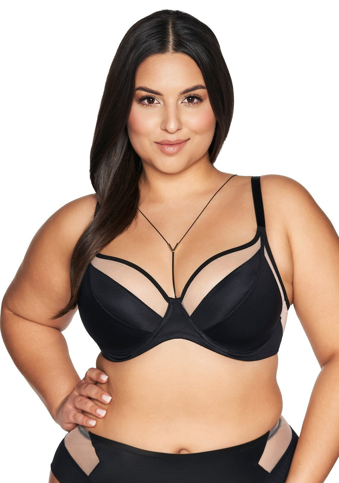 Reggiseno taglie forti con coppe morbide , realizzate in combinazione tra microfibra e tulle.